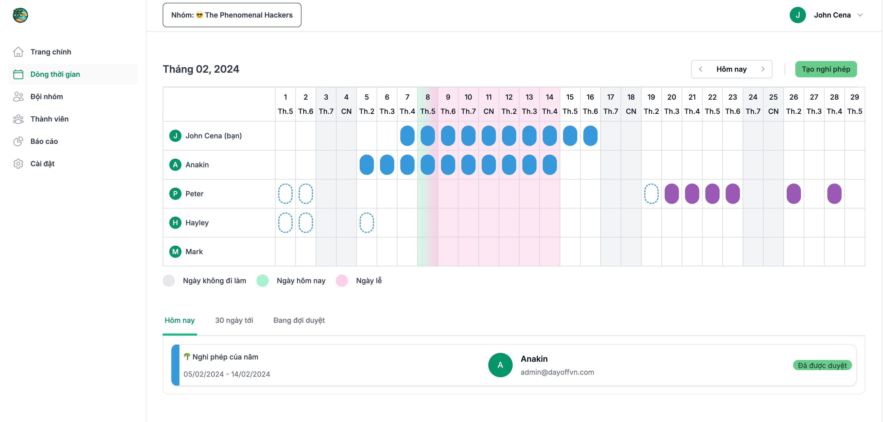 Ngoài ra, đây cũng là nơi để các thành viên tạo nghỉ phép và xem nghỉ phép của các thành viên khác.